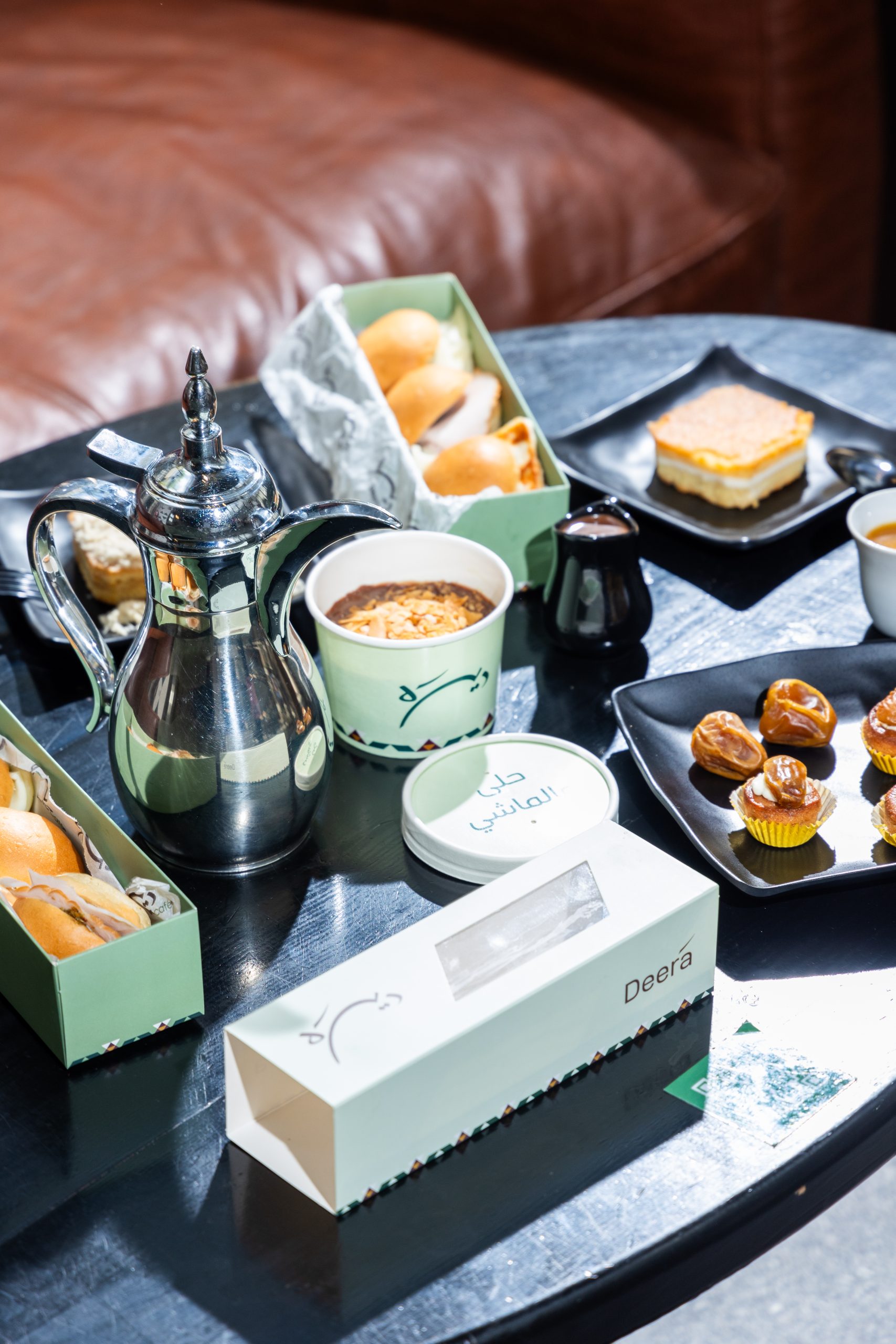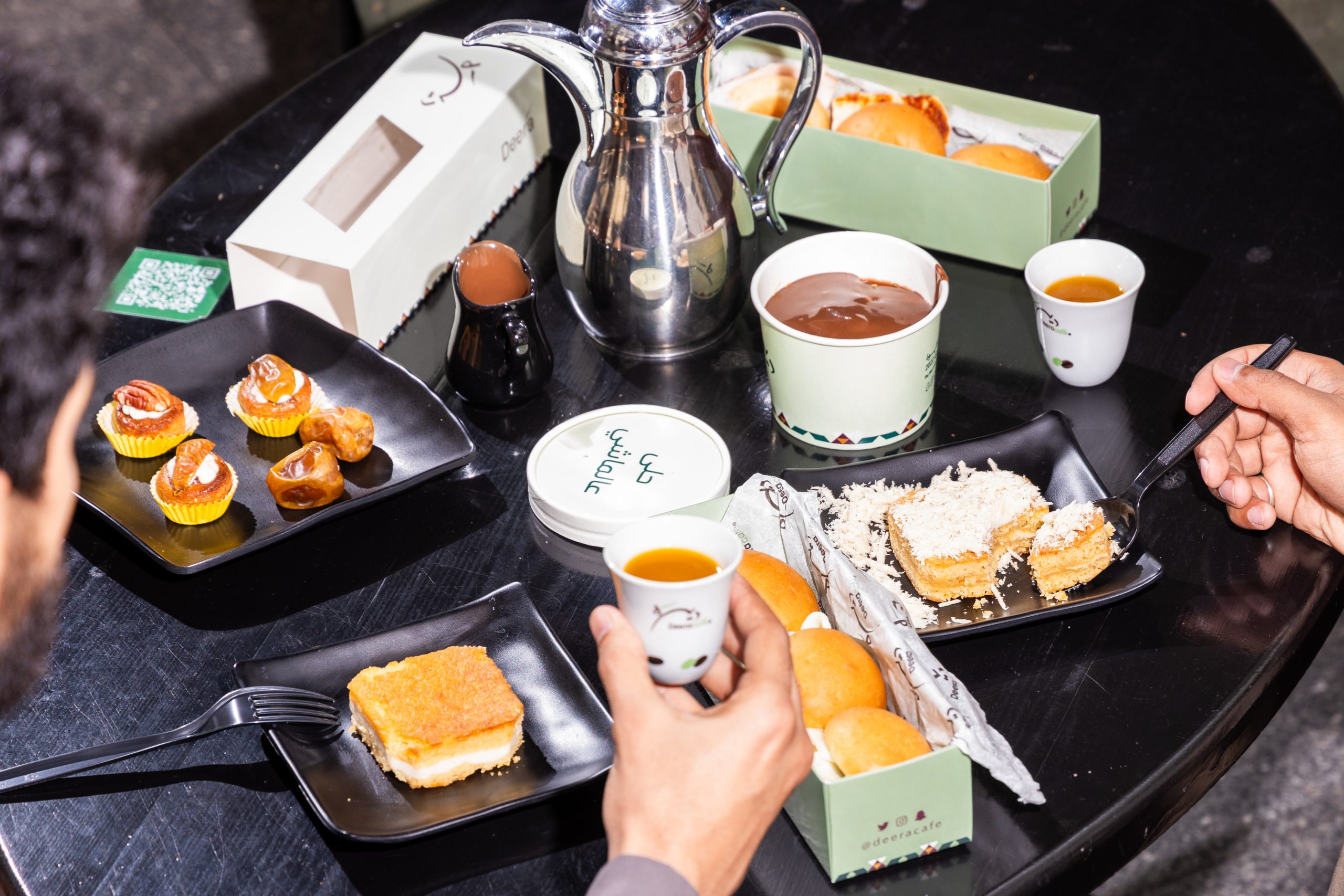 في " ديرة " تُحضر الحلويات والمخبوزات يومياً في فروعنا من مخابز ديرة الخاصة ، نقدم تشكيلة مختارة من الحلويات والمخبوزات اللي تناسب كل الأذواق وبمكونات عالية الجودة ، لتكون جزء من تجربة دافئة ، وأنيقة تحاكي تراثنا بطابع عصري .